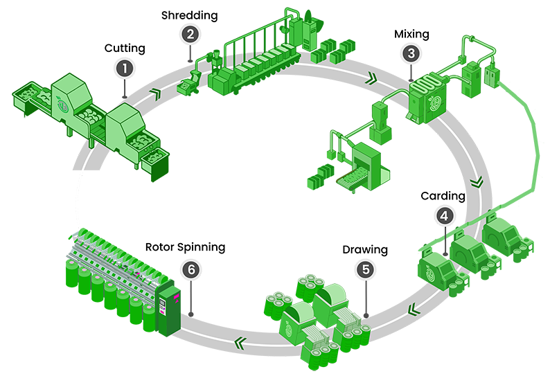 At Usha Yarns, we only use the best textile fiber recycling and spinning technologies available to spun our yarns. Our quality and research team work continually to improve each detail of our manufacturing processes to ensure you to get the best quality yarns which surpass the highest standards of any recycled yarn textile manufacturing company.